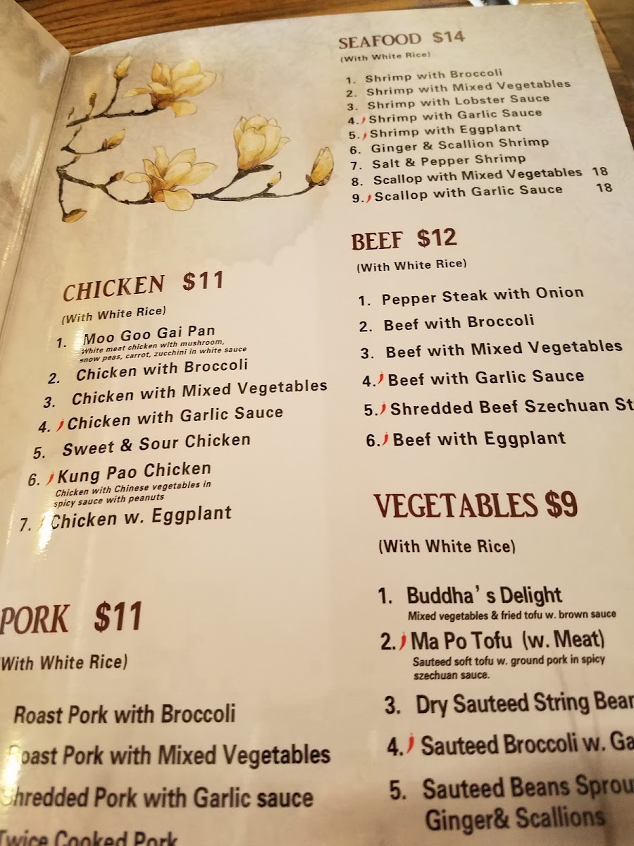 Spicy. General Tso's on one side, shrimp and scallops, with mixed vegetable on the other side.